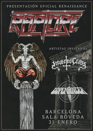 RAPTORE presentarán oficialmente su nuevo trabajo en Barcelona el sábado 31 de enero en la sala Upload de Barcelona. Los barceloneses estarán acompañados por INVERTED CROSS y DOPEMANCER.